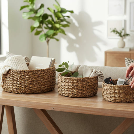 3 Körbe Aufbewahrungskörbe Seegras Korb Dekokorb braun Aufbewahrungskorb 3er Set