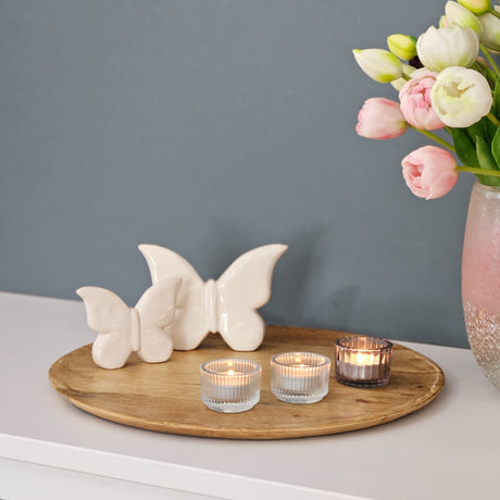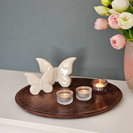 Holzteller Dekoteller rund hellbraun dunkelbraun 37 cm Kerzenteller Mangoholz