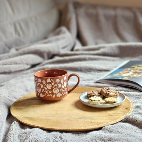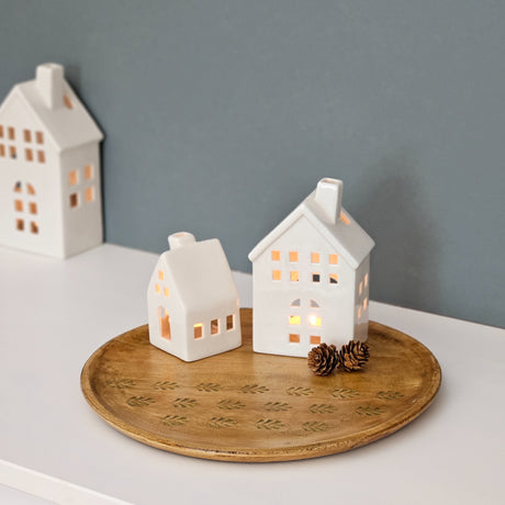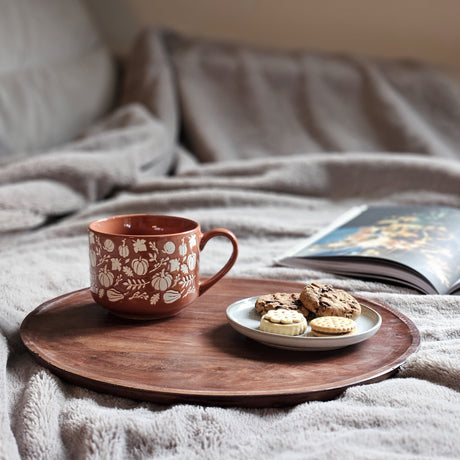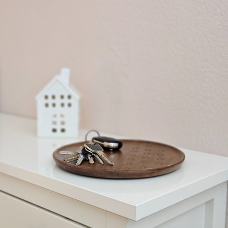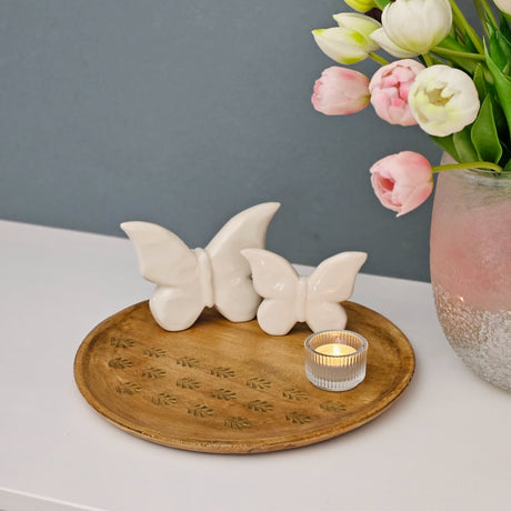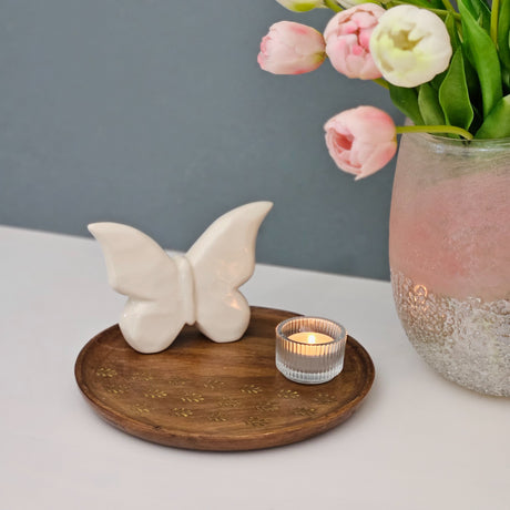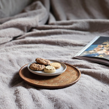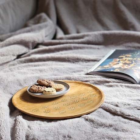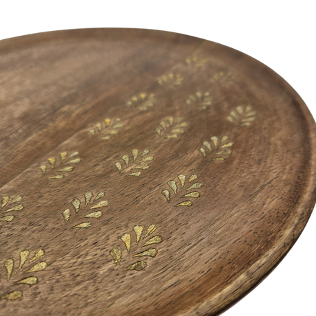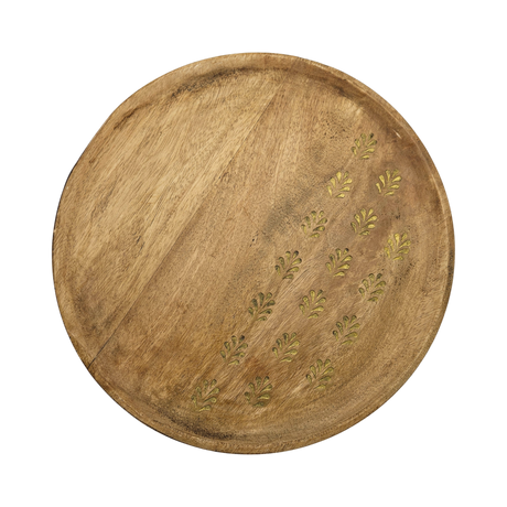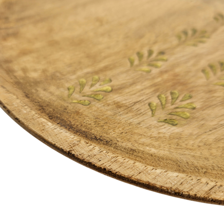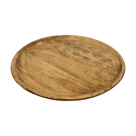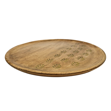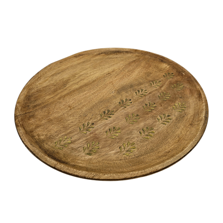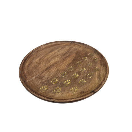 Holzteller Deko Teller Kerzenteller rund 22 o 30 cm Blattmuster braun Mangoholz dekobrett