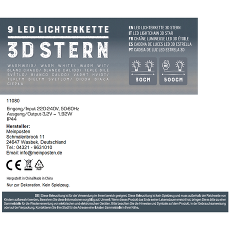 Lichterkette Weihnachtssterne LED warmweiß Fenster 3D Sterne mit Stecker 740cm