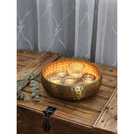 Metall Dekoschale Schale Metallschüssel rund gehämmert Hammerschlag gold 24 cm
