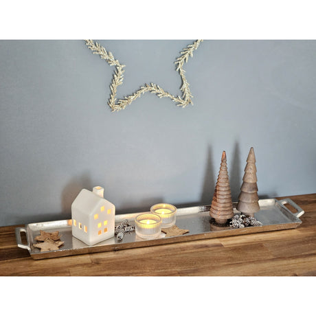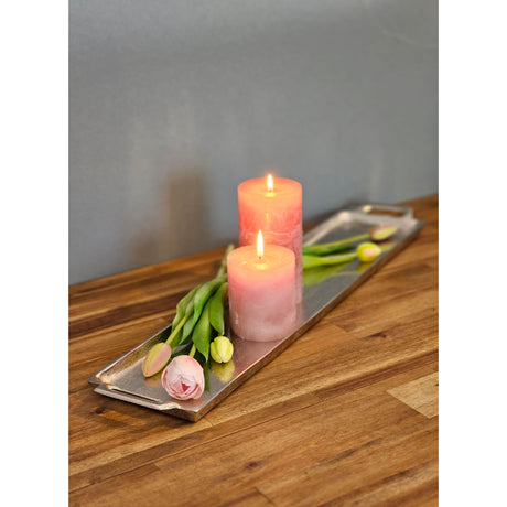 Metalltablett Tablett Serviertablett lang 59 cm Dekotablett silber mit Henkel