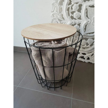 Side table children's storage basket metal wood white lid laundry basket 30x30