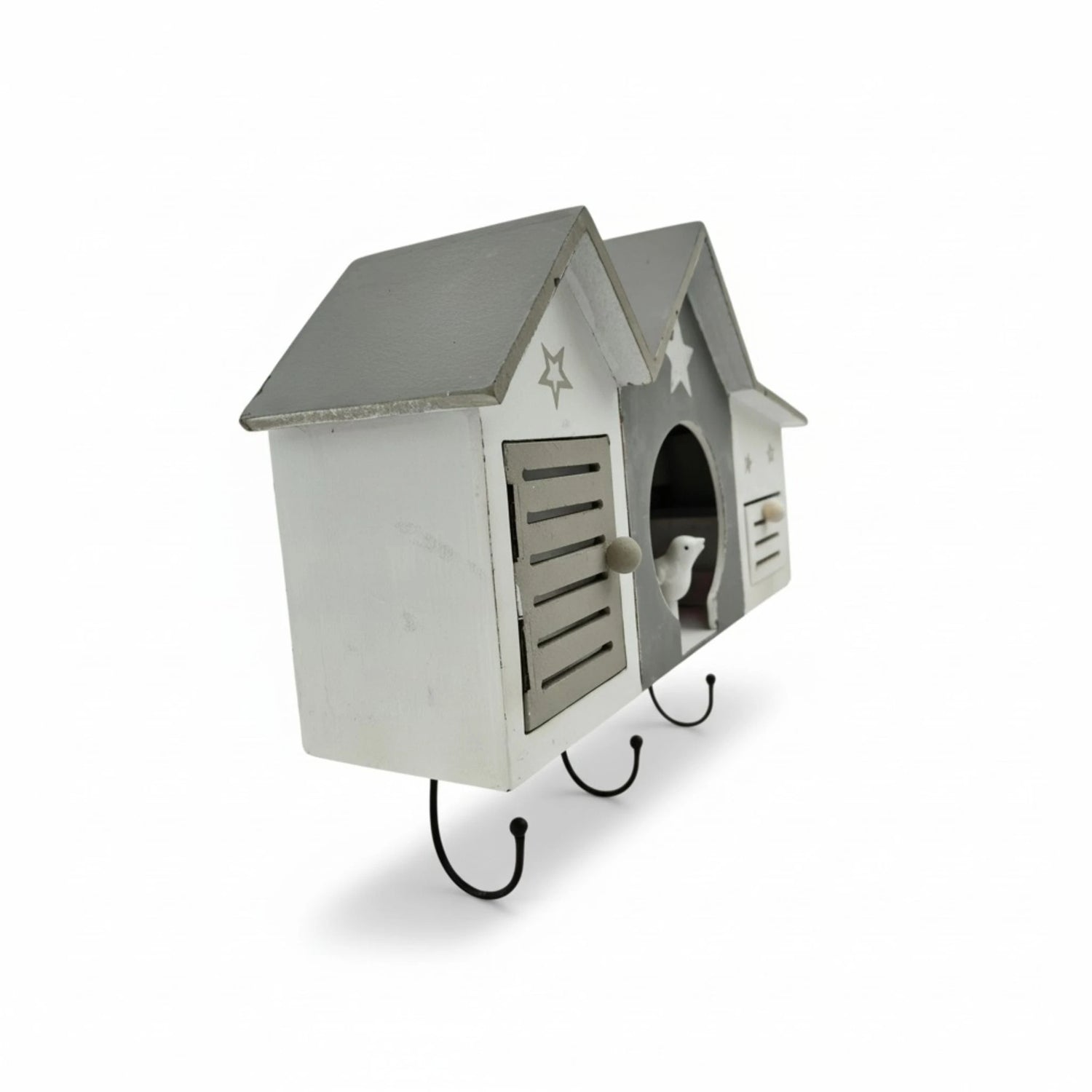 - Besonderheiten: 3 stabile Haken, kleiner Vogel in der Mitte, Tür links, Schublade rechts